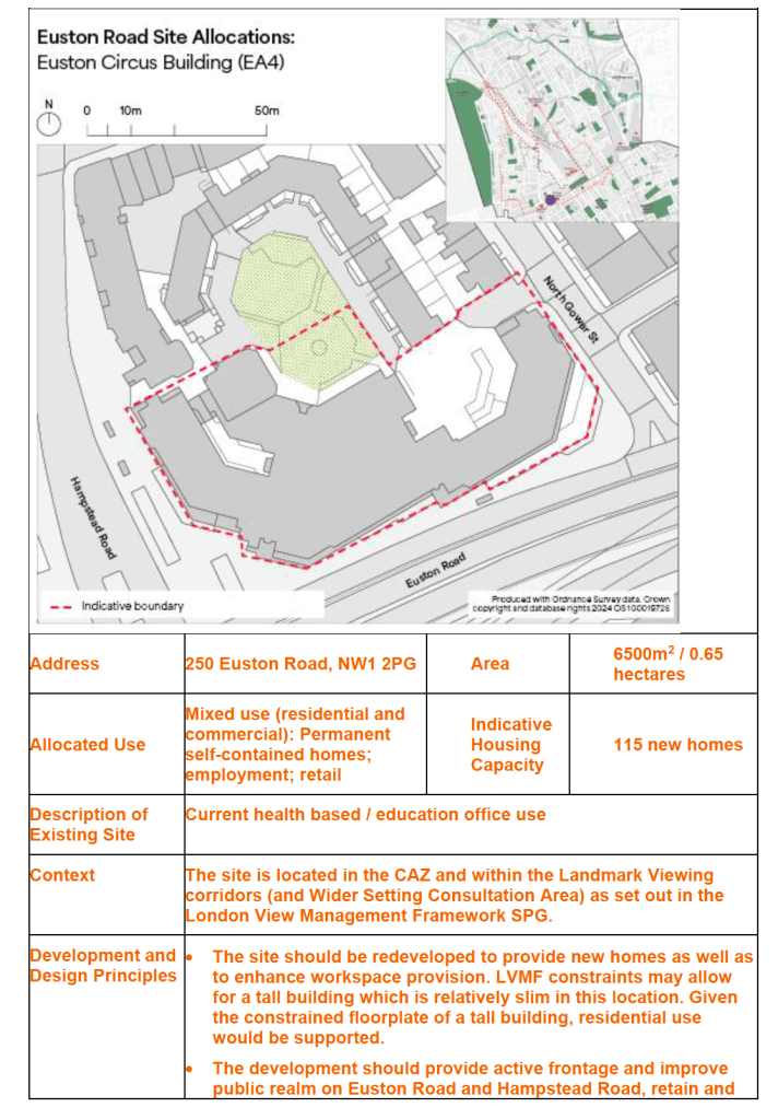 The building has been identified in Camden Council’s draft Euston Area Plan for redevelopment. The plan is currently out for consultation (deadline 22.02.16). The site allocation states that the site is suitable for “mixed use (residential and commercial): permanent self-contained homes; employment; retail”. It says that the north west corner (on the corner with North Gower Street) may be suitable for a 75m high tower, which it anticipates would be residential.