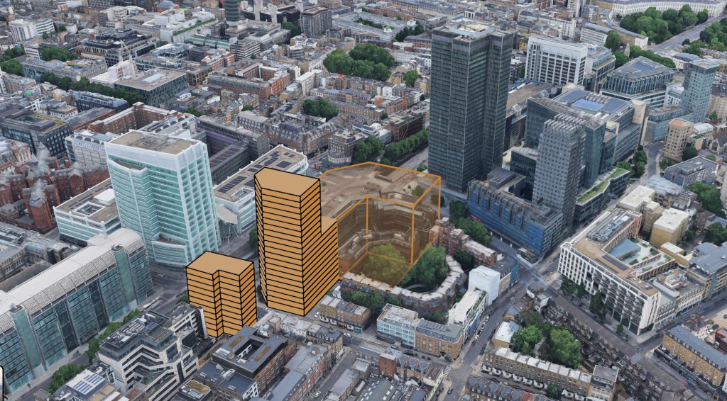 The above image shows the proposed mass of Camden’s proposal.