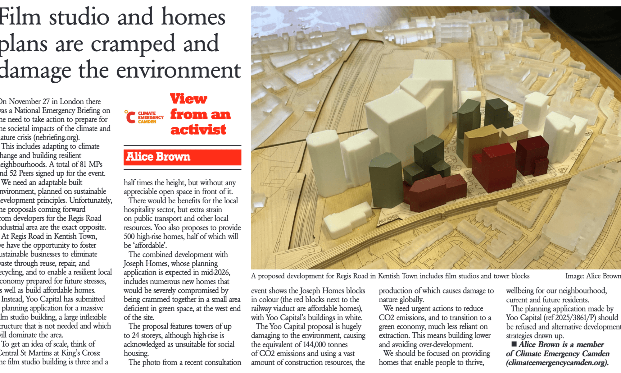 Climate Emergency Camden have submitted an objection to the proposals brought forward by Yoo Capital for the redevelopment of industrial land at Regis Road. Camden Council entered into a contractural agreement with the developer in 2023 for the sale of public land to Yoo Capital, the details of which have not been made public. This …