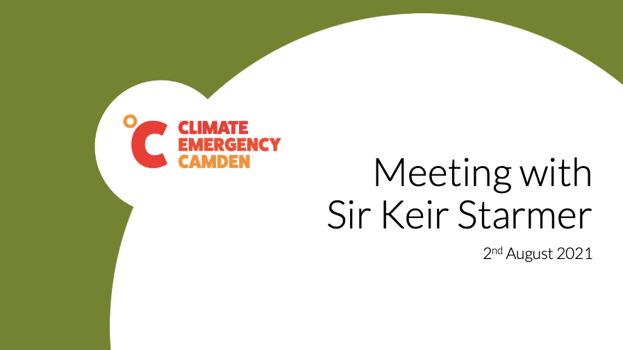 Climate Emergency Camden have met with the leader of the Labour Party to present a range of ideas about how he could broaden the scope of current policy on the Climate and Ecological Emergency. We wanted to avoid party political issues and focus on the actions that need to be taken. We started with a …