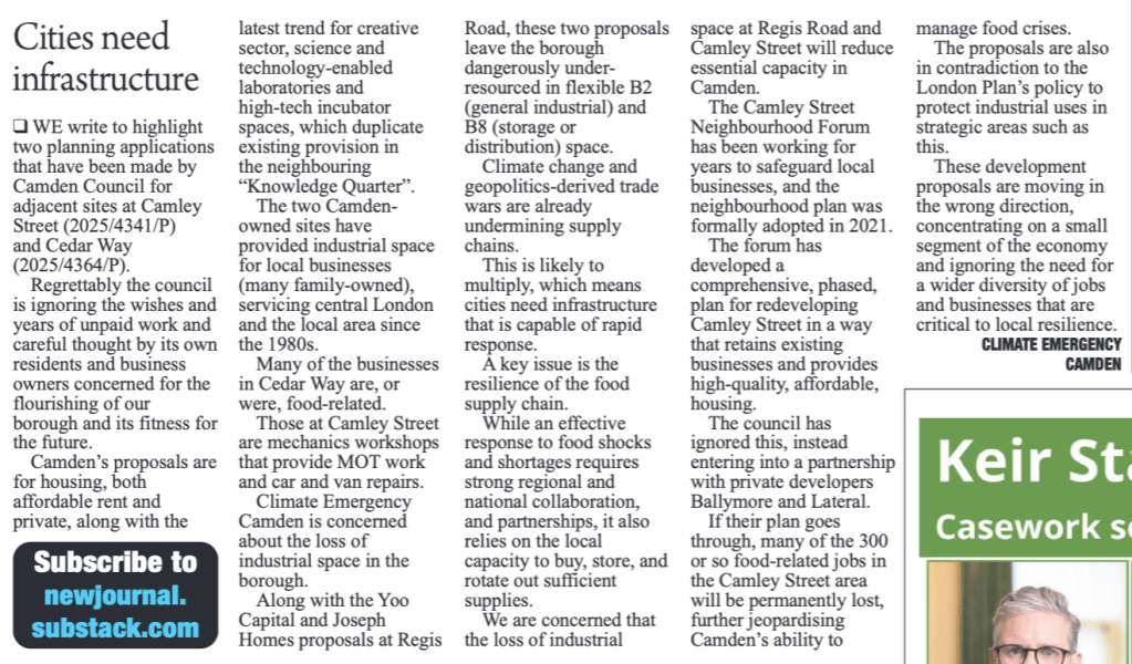 Letters published in the Camden New Journal and Ham & High: